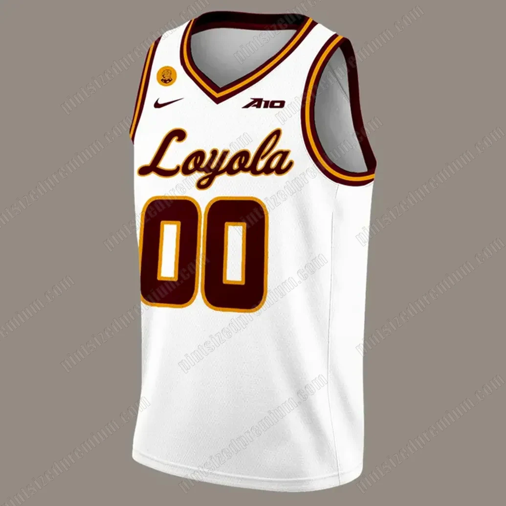 At PintSizedPremium, we understand that true fandom demands unparalleled quality and meticulous design. The 2025 Limited Edition Loyola Chicago Men’s Basketball Jersey exemplifies this commitment, crafted with an obsessive attention to detail that brings the game-day aesthetic to life. The jersey’s pristine white base provides the perfect canvas for its iconic details, exuding a clean, classic collegiate look. A deep, rich maroon, accented by a striking goldenrod yellow, outlines the comfortable V-neck collar and the armholes, framing the wearer in collegiate pride with a sophisticated pop of color. Across the chest, the elegant “Loyola” script comes alive in the same commanding maroon, meticulously edged with a vibrant goldenrod yellow that catches the light – a testament to the spirited academic and athletic community. Beneath, the bold “00” stands out, reflecting the iconic numbers worn by legends and awaiting your personalized touch, rendered with the same dual-tone precision. Near the left shoulder, a finely detailed, circular team-specific mascot emblem adds a unique, heritage-rich touch, while a premium collegiate conference insignia graces the right, signifying participation in elite competition. Crafted from a high-performance, breathable fabric, designed to keep you cool and comfortable whether you’re cheering courtside or making a statement on the street, this garment showcases PintSizedPremium’s dedication to superior craftsmanship. Every stitch, every color choice, and every design element is thoughtfully integrated to create a piece that is both authentic in its representation and unparalleled in its quality, ensuring you wear your pride in absolute comfort and style.