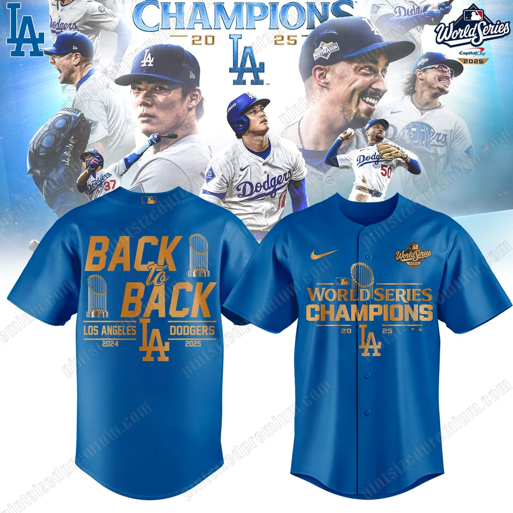 Imagine the thunderous roar of a packed stadium, the electric anticipation of a ninth-inning rally, and then the explosion of pure joy as the final out is made. Twice. This isn’t just a dream; it’s the future you can wear, the legacy you can claim. The “BACK to BACK LA Dodgers 2025 World Series Champions Limited Jersey” isn’t merely apparel; it’s a wearable prophecy, a symbol of unwavering faith in a team poised for unprecedented greatness. It speaks to the heart of every fan who believes in dynasties, in pushing boundaries, and in celebrating victories before they even happen. This jersey is for the trendsetters, the true believers, those who understand that being a fan is a lifestyle, a cultural phenomenon transcending mere sports. It’s for the collective energy shared from Dodger Stadium to a vibrant concert hall, from a passionate watch party to a casual day out, making a statement that resonates with fellow enthusiasts and turns heads wherever you go. PintSizedPremium understands this profound connection, crafting merchandise that goes beyond the game, allowing you to embody the pride and spirit of your community with unparalleled style and foresight.
