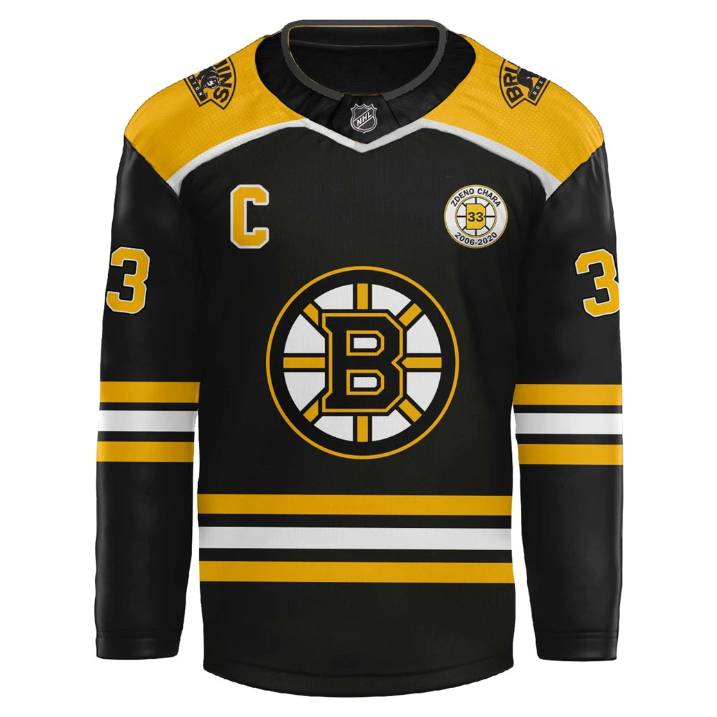 At PintSizedPremium, we believe true devotion deserves unparalleled quality, and the Boston Hockey Legends 33 Number Tribute 2025 Signature Limited Edition Jersey is a masterclass in design and execution. Crafted from premium, durable fabric, this jersey is engineered for both comfort and longevity, reflecting the same resilience and strength embodied by the legend it honors. The iconic color scheme of deep black and radiant gold dominates, a classic pairing that instantly evokes the powerful heritage of the team. The front proudly showcases the unmistakable “B” crest, meticulously embroidered with precision stitching that captures every intricate detail, standing as a beacon of team identity. Above it, the distinguished “C” patch signifies captaincy, a subtle yet profound nod to the leadership that defined an era. On the sleeves and across the back, the bold number 33 stands out in vibrant gold, outlined with sharp white, commanding attention. The back also features the revered “CHARA” nameplate, perfectly positioned above the number. A special circular commemorative patch, “Zdeno Chara 33 2006-2020,” is exquisitely integrated, marking the pivotal years of his indelible contribution. Below the number, a stylized signature graphic, a hallmark of authenticity, elevates this piece from fan apparel to a true collector’s item, offering a direct, personal link to the iconic figure. Every element, from the distinct gold shoulder yokes to the contrasting white and gold stripes on the sleeves and hem, is thoughtfully composed to create a premium garment that honors a legacy with unwavering style and superior craftsmanship, truly embodying the essence of PintSizedPremium.