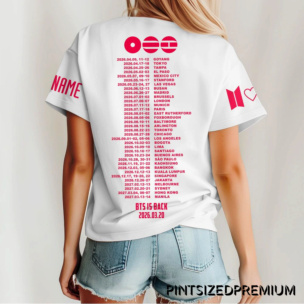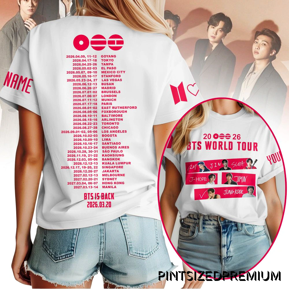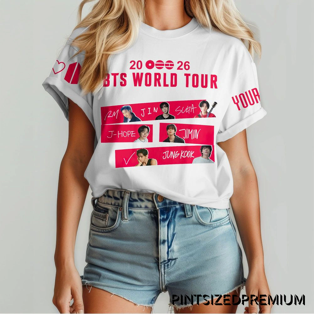 This limited-edition shirt transcends typical concert merchandise, establishing itself as a versatile staple of lifestyle fashion. It’s designed for the fan whose passion is part of their identity, effortlessly bridging the gap between stadium wear and high-street style. Pair it with denim for a casual day out, layer it under a jacket for a subtle nod to your community, or make it the centerpiece of your outfit for a fan event. Its timeless aesthetic ensures it remains a relevant and stylish tribute long after the final encore. As a limited-run piece from PintSizedPremium, its collector’s appeal is immense. Owning this shirt means possessing an exclusive artifact of a pivotal moment in music history, a rare item that will only grow in emotional and cultural value. We are committed to building community trust by delivering premium, thoughtfully designed products that honor the fandom experience. This isn’t just merchandise; it’s a symbol of your dedication, a celebration of an unbreakable bond, and your connection to a global family. Secure your place in their next chapter and let the BTS 2026 World Tour Limited Custom Shirt become the cornerstone of your collection.
