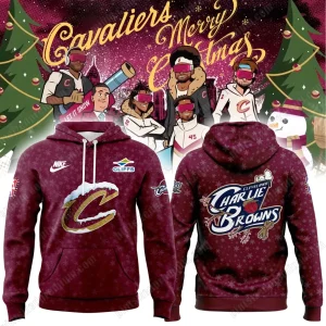 Crafted with meticulous attention to detail and a profound understanding of premium fan merchandise, the Cleveland Cavaliers 2025 Christmas Day Limited Hoodie from PintSizedPremium sets a new standard for quality and design. The garment features a rich, deep burgundy base, instantly evoking the warmth and classic style of the holiday season, subtly yet elegantly patterned with an array of delicate snowflakes that dance across the fabric, adding a festive shimmer to its overall aesthetic. The front proudly showcases a dramatically rendered, snow-capped iconic “C” emblem, signifying the Cavaliers’ enduring legacy and resilience, while subtle, official team partner emblems adorn the upper chest, affirming authenticity and team connection. A prominent league mark on the sleeve further underscores its status as genuine fan gear. Turning to the back, the hoodie reveals its true creative flair: a large, captivating graphic featuring the whimsical “Cleveland Charlie Browns” text, intertwined with festive arrows and a charming, uniquely rendered character, celebrating the joyous spirit of winter and the distinct crossover appeal of this limited edition piece. Every stitch, every design element, from the plush, comfortable fabric to the expertly integrated drawstrings and convenient kangaroo pocket, reflects PintSizedPremium’s unwavering commitment to superior craftsmanship and enduring quality, ensuring this hoodie feels as exceptional as it looks.