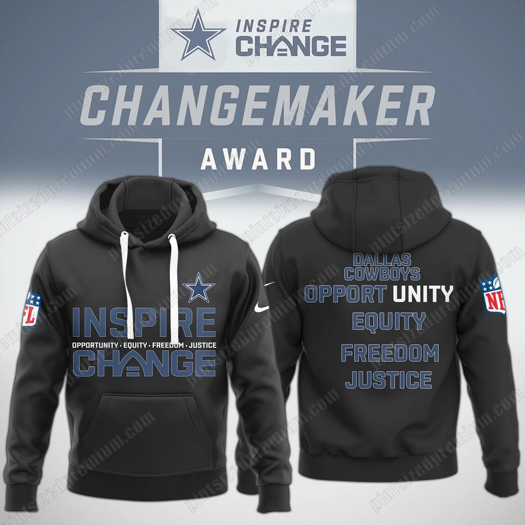 The roar of the crowd, the electric energy of a championship drive, the shared anticipation among thousands of loyal fans – these are the moments that define our passion. The Dallas Cowboys are more than just a team; they are a cultural touchstone, a symbol of pride, perseverance, and community spirit that unites generations. Now, PintSizedPremium brings you an exclusive piece that transcends typical fan merchandise, weaving the legacy of America’s Team with a powerful message of progress and unity. Introducing the Dallas Cowboys Inspire Change 2025 Freedom Hoodie, a garment designed not just for cheering from the stands but for standing for what you believe in. Imagine yourself on game day, surrounded by fellow fans, the collective energy palpable, your hoodie a beacon of both unwavering loyalty and a commitment to a brighter future. Or picture it as part of your everyday ensemble, a statement of your values worn with pride, sparking conversations and fostering connection wherever you go. This isn’t just apparel; it’s a narrative woven into fabric, representing the enduring spirit of the Dallas Cowboys and the collective aspiration for Opportunity, Equity, Freedom, and Justice. It’s for the fan who understands that true greatness extends beyond the scoreboard, inspiring change in every corner of the community and beyond, making it the perfect emblem for any stadium, concert, or cultural gathering.