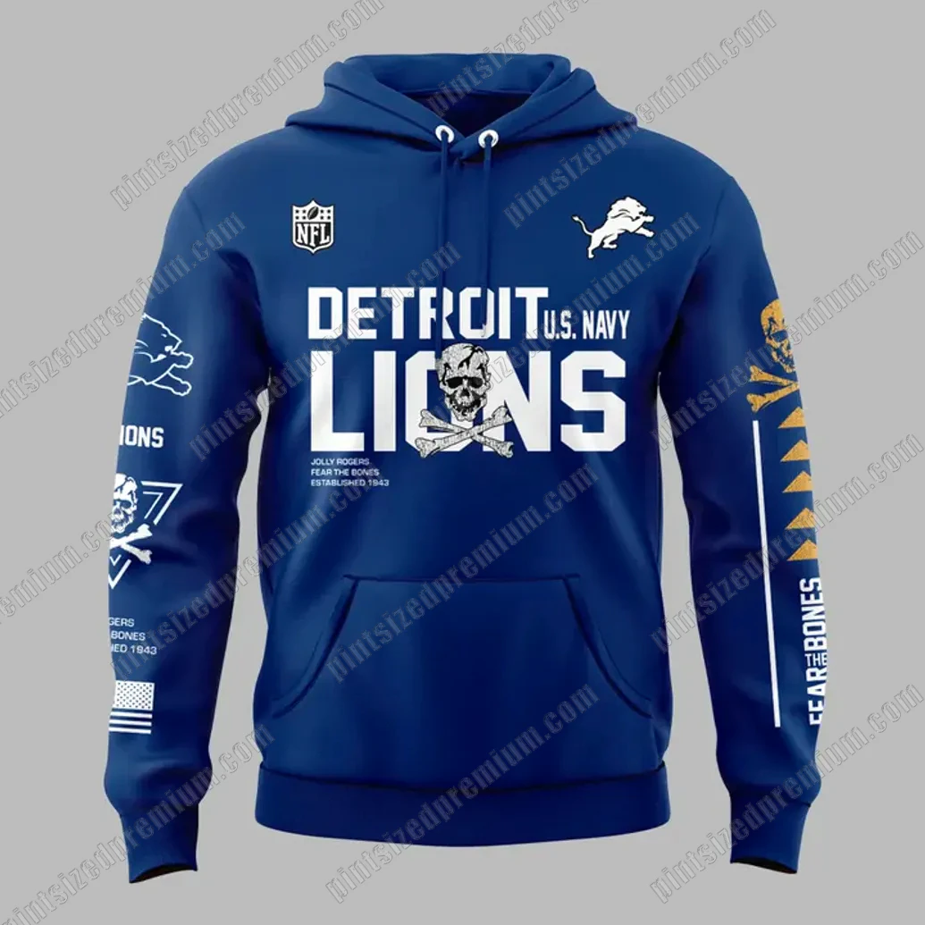 Commanding Gridiron Pride: The Exclusive Detroit Lions x Jolly Rogers US Navy Hoodie
