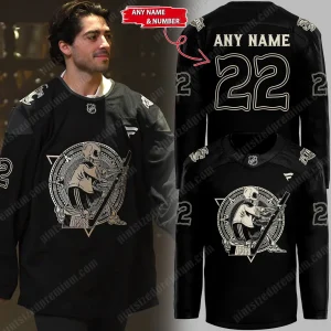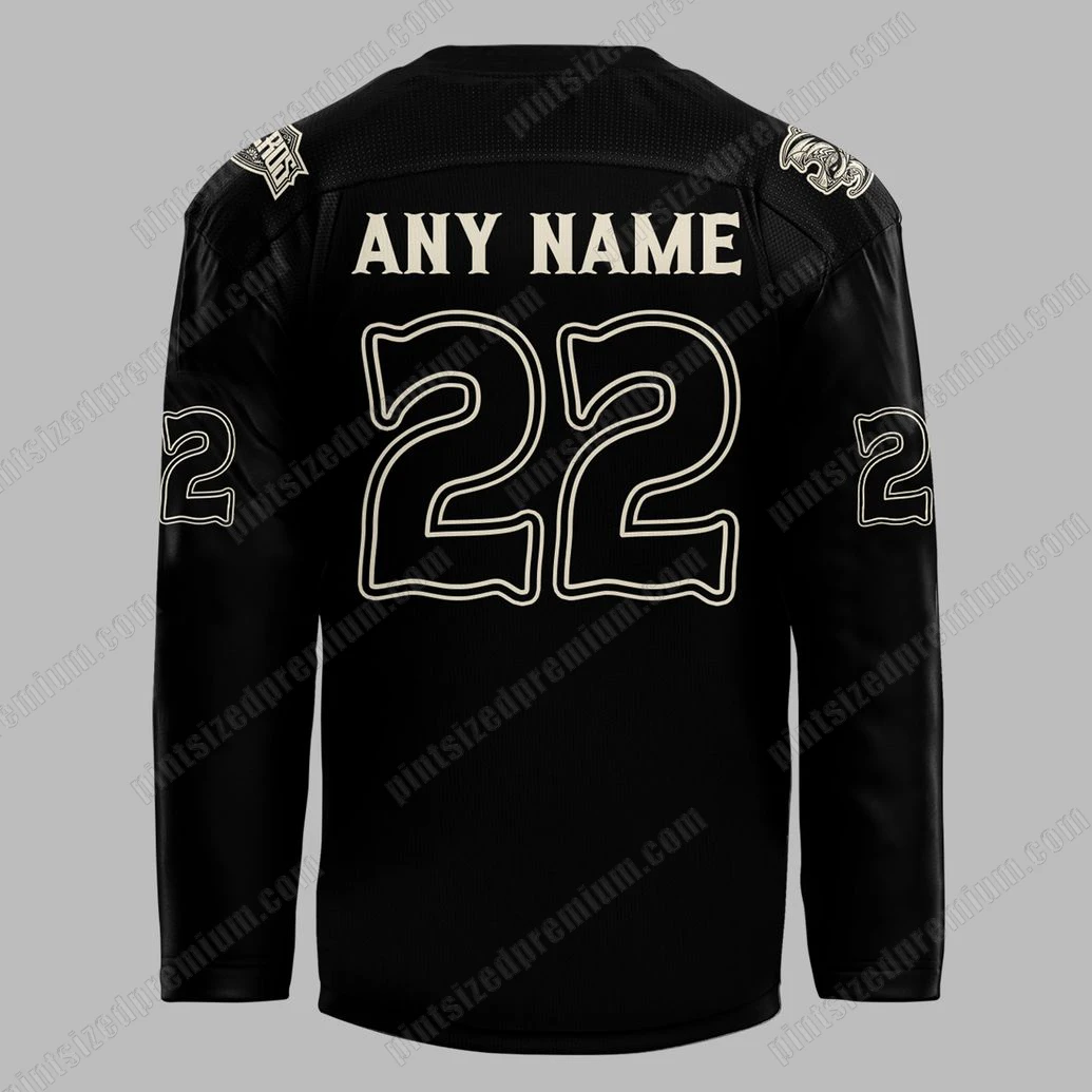 PintSizedPremium’s dedication to unparalleled craftsmanship shines through every detail of this premium crossover jersey. The foundation is a deep, rich black fabric, chosen not just for its striking visual impact but for its superior quality, offering both durability and exceptional comfort. At the heart of the design, a captivating central graphic brings the Day of the Dead theme to life with stunning artistry. An intricately detailed skeleton figure, poised dynamically with a hockey stick, is rendered in an elegant off-white, creating a powerful contrast against the dark background. This central motif is encircled by a mesmerizing, ornate pattern, reminiscent of traditional Dia de los Muertos artistry and ancient cultural designs, adding layers of meaning and visual depth. The same distinctive off-white hue is expertly applied to the bold numerical designs on the sleeves and the back, which can be fully personalized with “ANY NAME” and “ANY NUMBER,” allowing you to truly make this jersey your own. This personal touch transforms a collectible item into a cherished personal artifact. The superior print and embroidery techniques ensure that these intricate designs are not only visually stunning but also incredibly resilient, standing the test of time and countless washes, maintaining their crispness and vibrant appeal. This jersey is designed to feel as exceptional as it looks, with breathable zones incorporated into the design for optimal wearability, whether you’re on the move or simply showcasing your unique style.