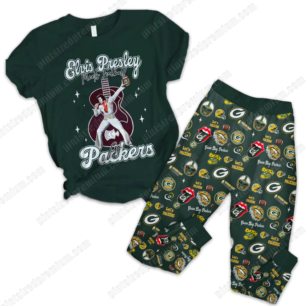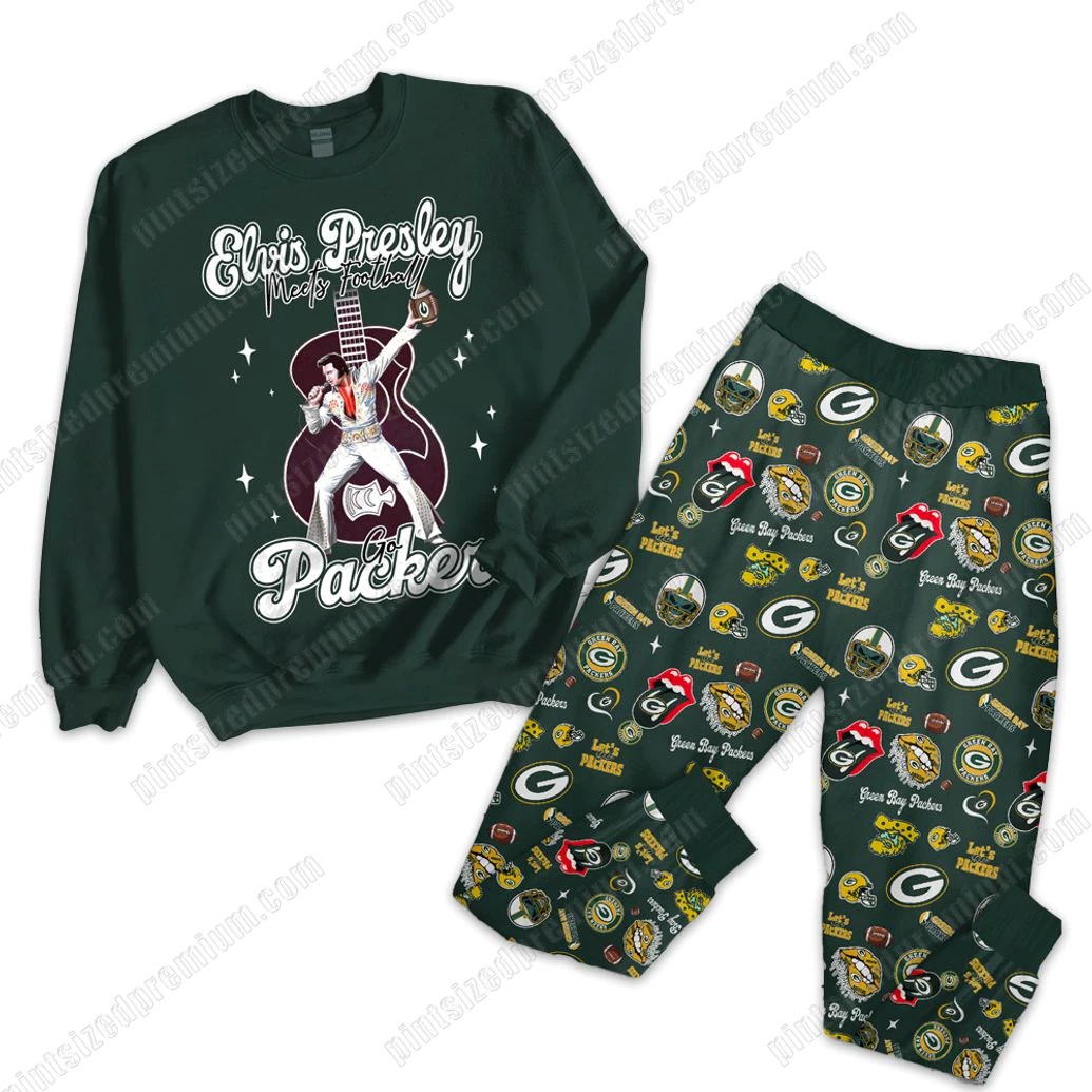 Elvis Presley Meets Go Packers Football Green Pajamas Set