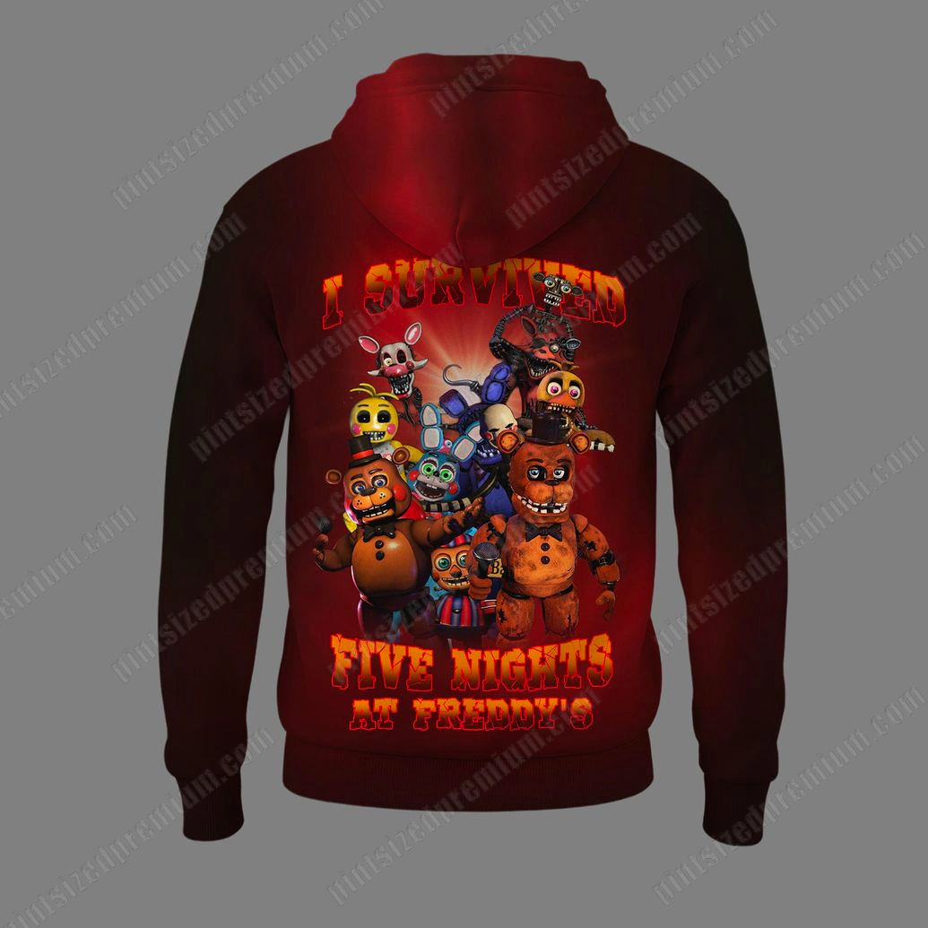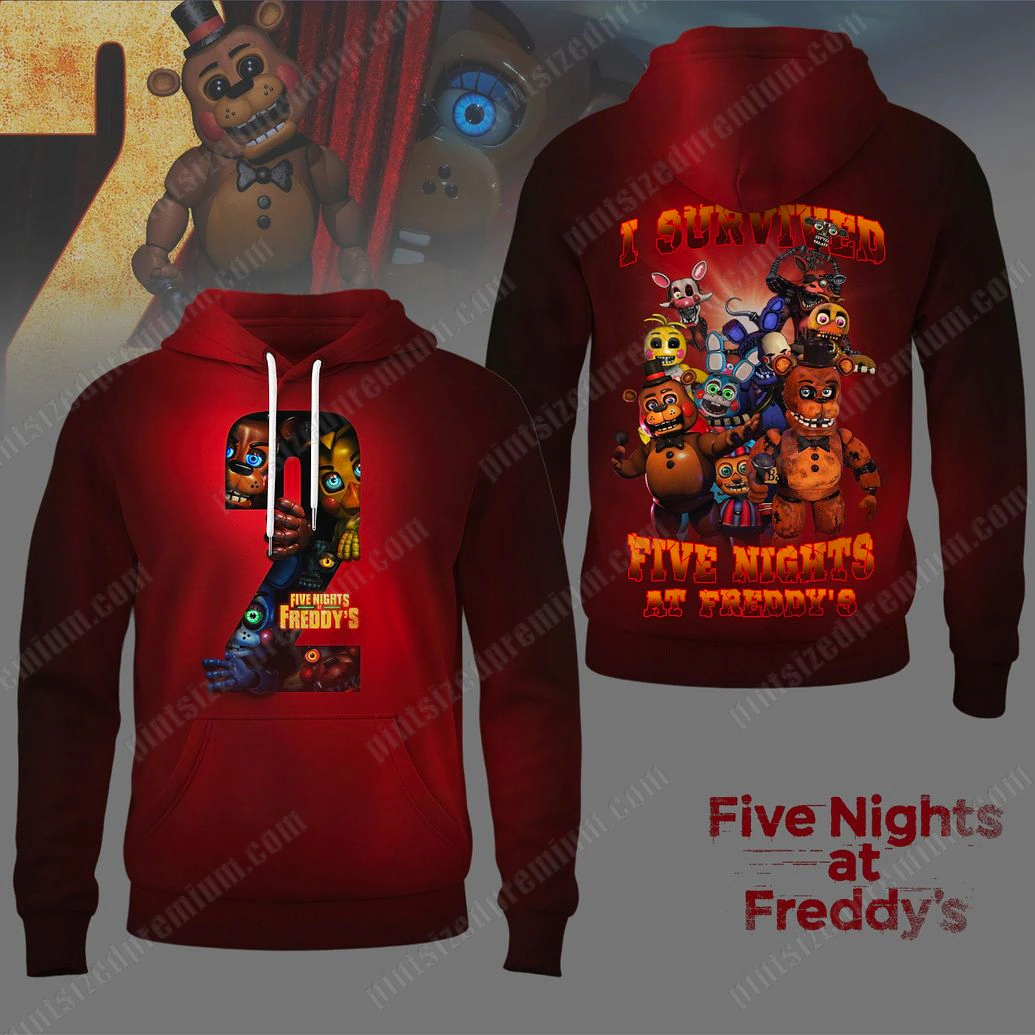 Crafted with the meticulous attention to detail that PintSizedPremium is renowned for, the Five Nights At Freddy Edition Hoodie is a masterpiece of fan-focused design and superior artistry. The rich, deep red hue of the fabric instantly sets the tone, a subtle nod to the ominous glow and tension that permeate the Pizzeria’s darkest corners. On the front, a striking deconstructed “2” commands attention, ingeniously formed from the fragmented, yet instantly recognizable, faces and mechanical parts of beloved animatronics. Each piece, from the piercing blue eyes of one character to the metallic jaws and internal mechanisms of others, is rendered with incredible precision, inviting closer inspection and revealing new details with every glance. Below this iconic numeral, the classic “FIVE NIGHTS AT FREDDY’S” logo is emblazoned with sharp clarity, anchoring the design in authentic lore. The reverse of the hoodie presents an equally compelling narrative: a bold “I SURVIVED” declaration sits proudly at the top, a triumphant testament to resilience. Beneath it, a vibrant, dynamic ensemble of the most iconic animatronics, including Freddy, Bonnie, Chica, Foxy, Mangle, Balloon Boy, The Puppet, and Springtrap, are intricately arranged in a heroic cluster. This detailed print captures the essence of each character with vivid colors and accurate portrayals, creating a powerful visual story of unity in terror. Constructed from a premium, soft-touch fabric, this hoodie promises exceptional comfort and lasting durability, ensuring the vivid graphics remain pristine through countless wear cycles and washes. Every stitch and every fiber speaks to PintSizedPremium’s unwavering commitment to delivering crossover fan merchandise that not only looks spectacular but feels luxurious and stands the test of time, an essential characteristic for true collector’s apparel.