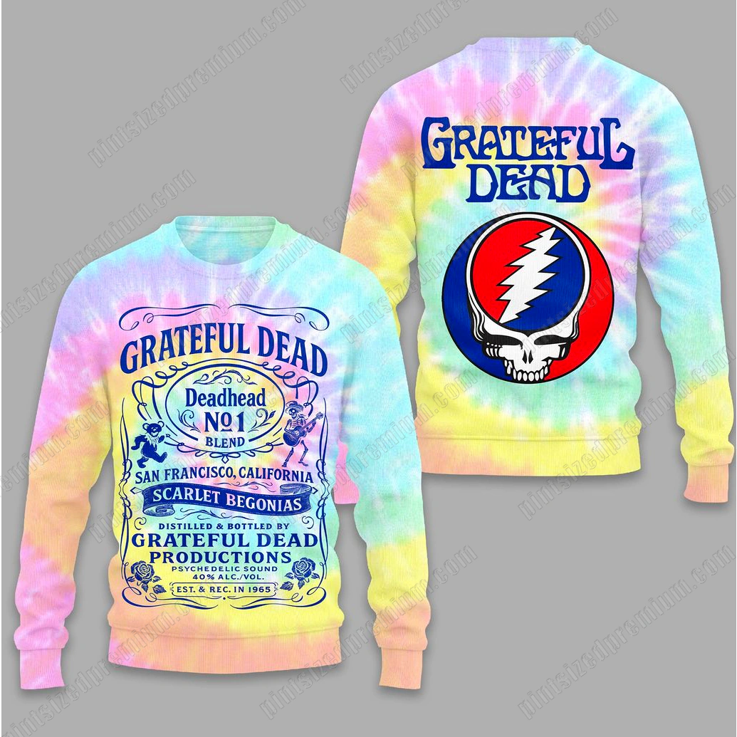 At PintSizedPremium, we believe true fan merchandise should be an art form, a meticulous fusion of passion and superior craftsmanship. This Grateful Dead San Francisco California T-Shirt exemplifies that commitment with its exceptional design and thoughtful detailing. The garment itself is a canvas, brought to life by a captivating tie-dye pattern that swirls with soft, harmonious shades of pastel pink, sky blue, sunny yellow, and ethereal purple, mirroring the kaleidoscopic visual experiences associated with the band’s era. The front of the shirt masterfully incorporates a vintage-inspired bottle label design, declaring “Grateful Dead” in an ornate, flowing script, immediately drawing the eye to its intricate beauty. Central to this label is “Deadhead No 1 BLEND,” a playful nod to the devoted fan base, flanked by the iconic dancing bears, one even strumming a banjo, adding a whimsical touch of the band’s whimsical iconography. Below, “SAN FRANCISCO, CALIFORNIA” proudly anchors the design, celebrating the band’s storied origins, alongside the beloved song title “SCARLET BEGONIAS.” Further details like “DISTILLED & BOTTLED BY GRATEFUL DEAD PRODUCTIONS” and “PSYCHEDELIC SOUND 40% ALC./VOL. EST. & REC. IN 1965” complete the mock-label, rich with historical references and inside jokes that resonate deeply with fans. The bottom corners are adorned with delicate rose motifs, a recurring symbol in Grateful Dead lore. Turning to the back, the shirt features a bold, unmistakable “GRATEFUL DEAD” wordmark in a classic, heavy font, beneath which sits the universally recognized “Steal Your Face” skull logo, rendered in its classic red, white, and blue, with the lightning bolt slicing through. Every element is printed with precision, ensuring vibrant, colorfast imagery that withstands the test of time and countless washes, guaranteeing a lasting testament to both the band’s legacy and PintSizedPremium’s unwavering dedication to quality.