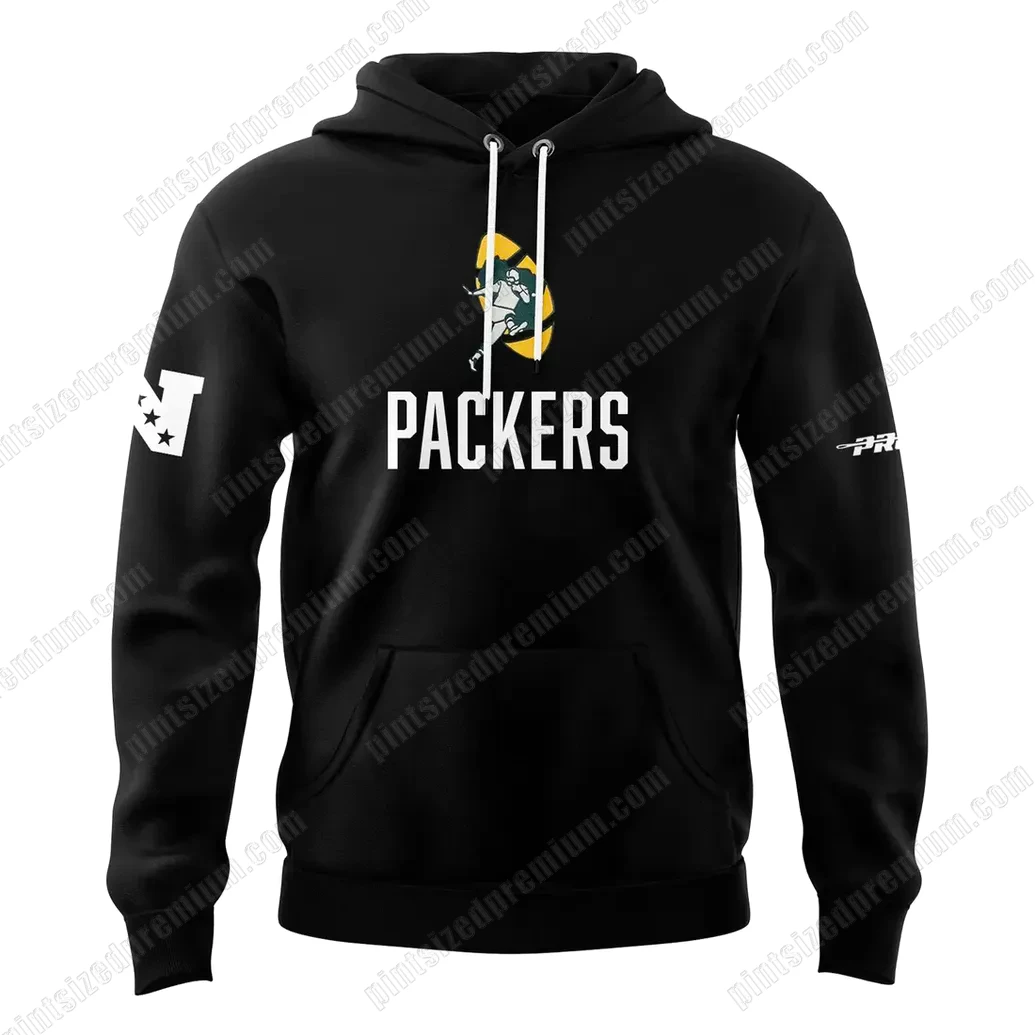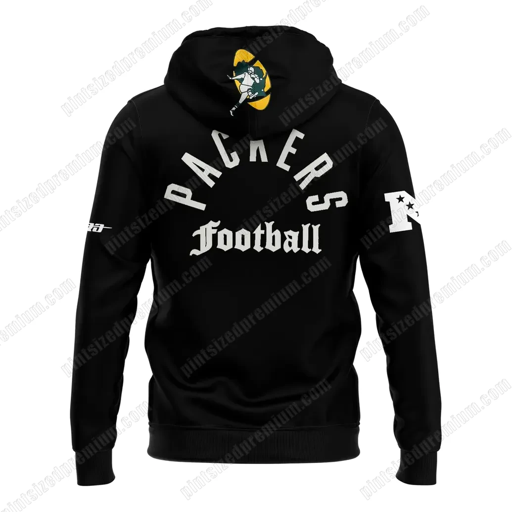 At PintSizedPremium, we believe that true fandom deserves nothing less than exceptional craftsmanship, and this Green Bay Packers New Edition 2025 Special Hoodie is a testament to that philosophy. Constructed from a luxurious, breathable, and sustainably sourced premium fabric blend, this hoodie promises unparalleled comfort that stands the test of time, from exhilarating game moments to relaxed evenings. Its deep, sophisticated black serves as the perfect canvas for vibrant team iconography, ensuring colors pop with striking clarity. The front proudly features a dynamic, stylized player figure in iconic green and yellow hues, capturing agility and power, positioned directly above the bold, crisp white “PACKERS” lettering. Turning to the back, the artistry continues with “PACKERS” rendered in a distinctive arched, block font, layered above “Football” presented in an elegant, heritage-inspired script. This intricate detail elevates the hoodie from simple fanwear to wearable art, celebrating the team’s rich history with a modern twist. Each sleeve carries its own signature: a striking white patch adorned with a bold ‘N’ alongside three stars on one side, hinting at the exclusive nature of this special edition collection. The other sleeve subtly features our distinct PintSizedPremium logo, a mark of authenticity and unwavering commitment to quality. Robust white drawstrings offer sharp contrast and functional appeal, complementing the practical kangaroo pocket – perfect for keeping hands warm or stashing essentials. Every detail, from precise, durable stitching to high-definition print, speaks volumes about the meticulous attention given to creating a premium product for the discerning fan.