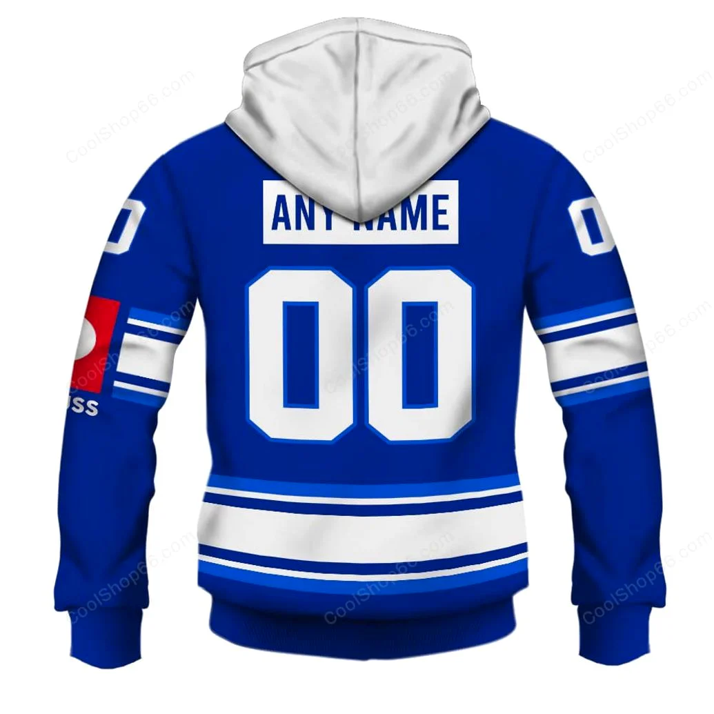 Every stitch and hue of this exclusive HC Kometa Brno CHL New Hoodie speaks to a meticulous dedication to craftsmanship, a hallmark of the PintSizedPremium promise. The garment’s foundation is a rich, vibrant royal blue, a color synonymous with the team’s fighting spirit and instantly recognizable by any devoted follower. This striking base is elegantly contrasted with crisp white accents, including the soft inner lining of the hood and the substantial drawstrings, adding a touch of classic athletic appeal. The design thoughtfully incorporates traditional hockey jersey elements with bold white horizontal stripes gracing both the lower torso and the sleeves, creating a dynamic and authentic silhouette. At the heart of the hoodie, emblazoned across the chest, is the iconic “HC KOMETA BRNO” logo, presented in a clean, sharp white, featuring a stylized puck and star that perfectly encapsulates the essence of the game and the team’s aspiration. Flanking this central emblem are distinct markers of allegiance: a unique red square emblem with a stylized avian motif on the upper left chest, a proud representation of the Czech national flag, and the bold red “CHL” logo on the upper right, signifying the league’s prestige. On the shoulders, the number “0” is crisply rendered in white, while the back offers a personalized touch with a prominent “ANY NAME” box above large “00” numerals, all in brilliant white, inviting you to make this garment truly your own. Crafted from a premium, substantial fabric, this hoodie promises not only exceptional durability but also a luxurious softness that ensures unparalleled comfort, whether you’re cheering from the stands or enjoying a relaxed evening.