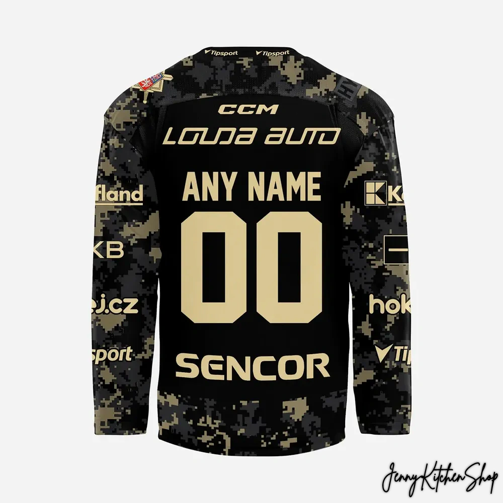 Our commitment to premium quality is evident in every stitch and fiber of this exceptional piece. We’ve moved beyond traditional designs to create a jersey that is both a tribute and a trendsetter. The foundation is a commanding, deep black fabric, providing the perfect canvas for the sophisticated design elements. Across the sleeves and side panels, a custom digital camouflage pattern unfolds in tactical shades of charcoal and muted khaki, adding a modern, urban edge that sets this jersey apart. The iconic stylized ‘S’ on the chest is a masterpiece of detail, filled with the same digital camo and expertly outlined in a striking champagne gold that catches the light. This premium gold accent is carried through to the customizable name and number on the back, as well as the sponsor logos, creating a cohesive and luxurious aesthetic. On the shoulder, the richly detailed, full-color club crest stands as a proud testament to the team’s storied history, while the “SPARTA PRAHA HOLD” emblem on the chest anchors the design in modern pride. Crafted from a durable yet breathable material blend, this jersey is engineered for all-day comfort, ensuring it feels as good as it looks, whether you’re celebrating a goal or making a statement in your daily life.