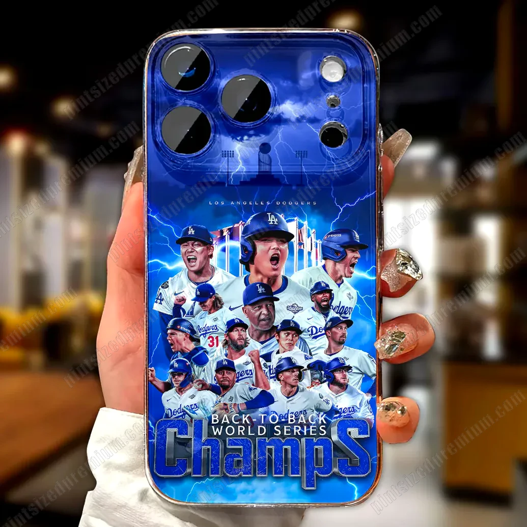 LA Dodgers 2025 Back To Back World Series Champions Phone Case, Glass, Glass Luminous, Black Silicone, Transparent Silicone