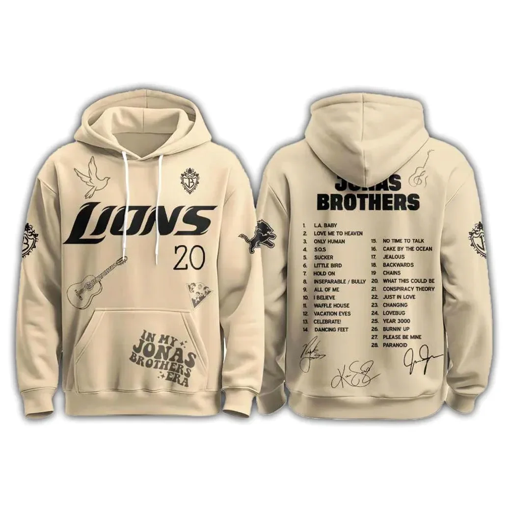 Remember that feeling? The lights dimming, the roar of the crowd, the first chords of “Burnin’ Up” echoing through the arena. You’re surrounded by your best friends, singing every lyric at the top of your lungs, lost in the shared experience of being a true Jonas Brothers fan. At PintSizedPremium, we understand that feeling. We know that being a fan isn’t just about listening to the music; it’s about living and breathing the culture. That’s why we created the Lions Greetings From Jonas Brothers List Song Hoodie – a wearable tribute to the soundtrack of your life. Imagine yourself rocking this hoodie at the next concert, instantly connecting with fellow fans who recognize the iconic song list emblazoned on the back. Or picture yourself casually strolling through town, turning heads with a unique piece that subtly screams your dedication to the JoBros. This isn’t just clothing; it’s a conversation starter, a badge of honor, a tangible piece of your fandom.