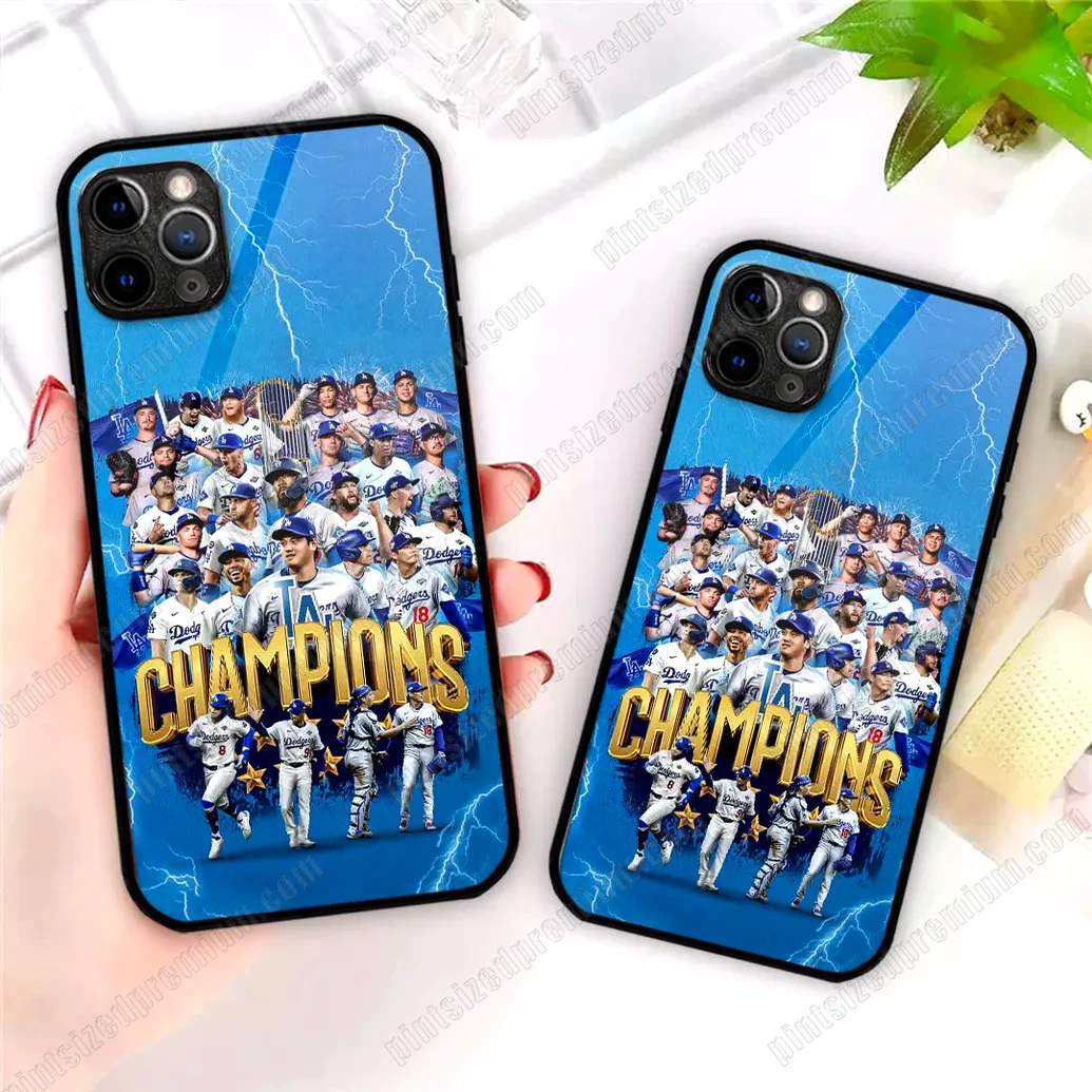 Los Angeles Dodgers 2025 Champions Phone Case, Glass, Glass Luminous, Black Silicone, Transparent Silicone