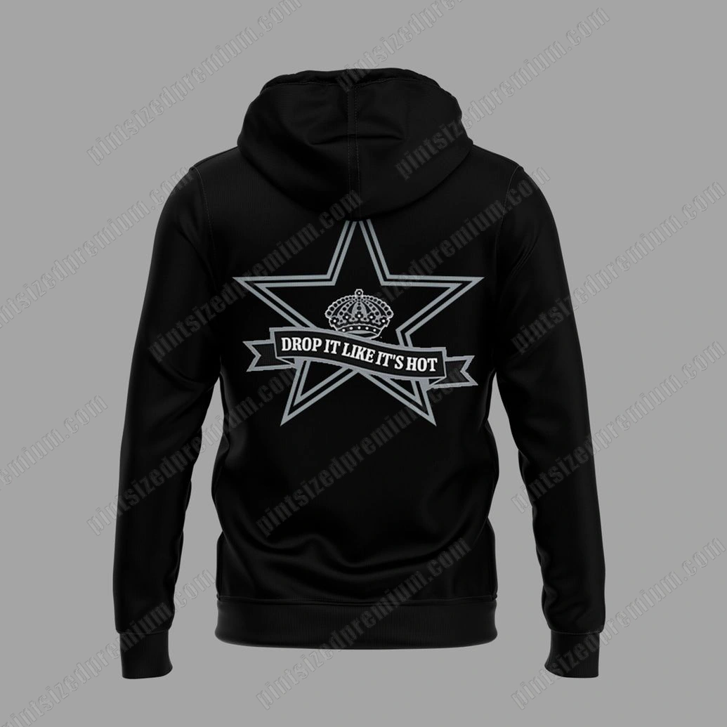 At PintSizedPremium, we believe that true fandom deserves nothing less than exceptional craftsmanship, and the Los Angeles Kings 2025 Back History Month Hoodie exemplifies this philosophy. Each stitch and print is a testament to our unwavering commitment to quality. Crafted from a superior, comfortable blend of fabrics, this hoodie promises both warmth and durability, making it perfect for brisk arena nights or relaxed everyday wear. The classic black base provides a sophisticated yet versatile backdrop for the striking graphics that command attention. On the front, a bold, distressed “Los Angeles KINGS” graphic is prominently displayed within a distinguished shield-like emblem, featuring a subtle crown detail that signifies royalty and dominance. This intricate design choice isn’t just printed; it’s meticulously applied with a premium, textured finish in a contrasting white or light grey, giving it a tactile depth that speaks volumes about its quality and urban edge. The reverse side unveils an equally compelling design: a grand, outlined five-pointed star framing a regal crown, all rendered in the same high-contrast, distressed style. Beneath this majestic emblem, a banner proudly declares, “DROP IT LIKE IT’S HOT,” a powerful, culturally resonant phrase that adds an element of undeniable swagger and celebratory spirit. These designs are not merely printed; they are meticulously integrated into the fabric, ensuring their crisp vibrancy and longevity wash after wash, reflecting PintSizedPremium’s dedication to sustainable practices and lasting fan heirlooms.
