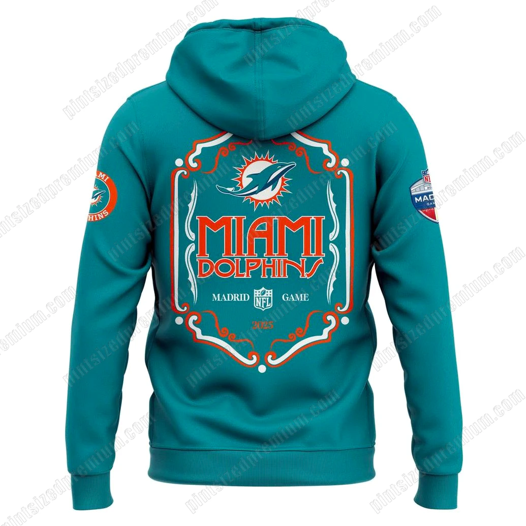 Global Gridiron Grandeur: Elevate Your Fandom with the Miami Dolphins 2025 Madrid Game New Edition Hoodie