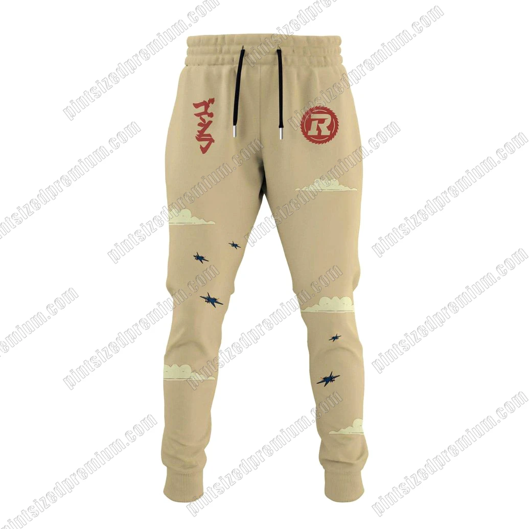 The Ottawa Redblacks x Godzilla Limited Hoodie embodies PintSizedPremium’s commitment to meticulous craftsmanship and innovative design. Crafted from supremely comfortable, high-quality fabric, it offers a soft hand feel, breathable warmth, and long-lasting resilience. The versatile, earthy khaki canvas allows vibrant, dynamic artistry to truly spring to life. On the front, “OTTAWA REDBLACKS” stands boldly in striking red, a clear emblem of team allegiance. Flanking this, a meticulously rendered titan, depicted in shades of deep blue and teal, unleashes formidable atomic breath amidst a stylized cityscape. This scene, pulsing with energy, shows small fighter jets braving chaotic skies, dramatically set against an orange sun. This intricate artistry extends fluidly to the sleeves, where elegant Japanese script, subtly translating to ‘Godzilla’, flows with artistic precision, interspersed with floating clouds and swift aircraft, adding an authentic layer of cultural immersion. The rear of the hoodie completes this visual epic: the iconic Redblacks ‘R’ logo, encircled by its distinctive saw blade motif, boldly presides against the radiant orange sun, a powerful symbol of team identity. Below, the titan’s colossal form is captured in breathtaking detail, continuing its awe-inspiring presence amidst the urban sprawl. This incredible imagery comes to life through a state-of-the-art, high-definition direct-to-garment printing technique. This advanced method ensures every explosive cloud, architectural nuance, and vivid shade retains unparalleled integrity, vibrancy, and crispness. The precision in artistic composition and exceptional print durability make this hoodie a truly wearable work of art, exemplifying PintSizedPremium’s dedication to unparalleled quality and design innovation.