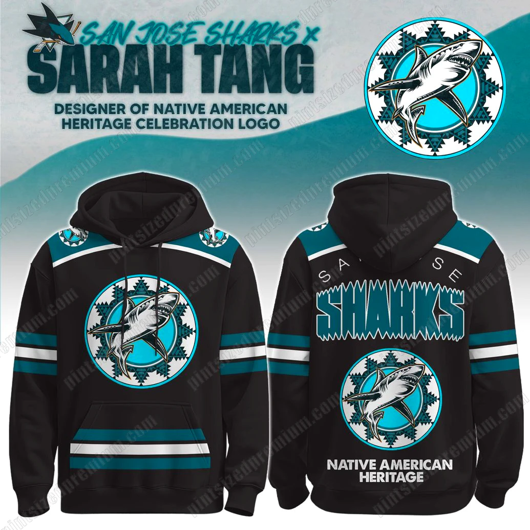 Imagine the electric atmosphere on game night, the roar of the crowd echoing as you stand shoulder to shoulder with fellow enthusiasts, a palpable sense of belonging radiating through the arena. Or perhaps envision a vibrant community gathering, a celebration of shared stories and rich traditions under the open sky. In these moments of collective spirit, the San Jose Sharks Sarah Tang American Heritage 2025 Limited Edition Hoodie emerges not just as an article of clothing, but as a powerful emblem of pride, culture, and unwavering allegiance. This isn’t merely fan gear; it’s a narrative woven into fabric, celebrating the profound connection between sport and heritage. PintSizedPremium proudly presents this extraordinary hoodie, a testament to the enduring legacy of the San Jose Sharks and the artistic vision of Sarah Tang, the esteemed designer behind the Native American Heritage Celebration Logo. It symbolizes a beautiful fusion, honoring Indigenous cultures while amplifying the communal energy that defines fandom. Wearing this hoodie means carrying a piece of history, showcasing your devotion, and participating in a larger story of respect and identity that resonates far beyond the typical fan experience. It’s an invitation to connect, to celebrate, and to truly embody the spirit of your team and community, making every stadium visit, every casual outing, or every cultural event a profound expression of who you are and what you stand for.