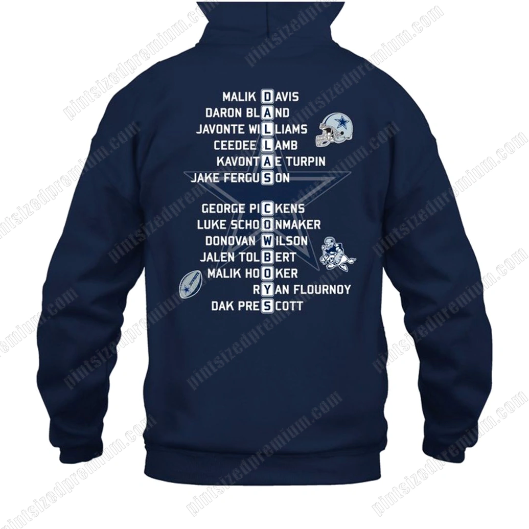 At PintSizedPremium, craftsmanship is not just a promise; it’s an art form, and this commemorative garment is a sterling example of our dedication to excellence. The robust, premium-quality fabric, chosen for its exceptional comfort and long-lasting durability, provides the perfect canvas for this iconic design. Drenched in a rich, deep navy blue, the shirt immediately evokes the classic hues of team spirit, offering a versatile base that pairs effortlessly with any wardrobe. The front of the shirt masterfully combines a vibrant, celebratory narrative with crucial game details. Prominently displayed is the triumphant score, “31 – 28,” flanked by the beloved star emblem on the left, signifying a dominant performance. Below this, the definitive details: “NOVEMBER 27, 2025 AT&T STADIUM,” forever etching the date and location of this future legendary clash into its very fabric. The central graphic is a playful yet powerful depiction of victory: a heroic cartoon cowboy mascot, exuding confidence, stands triumphantly over a playfully defeated wolf mascot, who is comically adorned in festive holiday attire, complete with a seasonal sweater and hat. This whimsical scene perfectly captures the spirit of Thanksgiving victory, blending spirited rivalry with holiday cheer. The bold text, “THIS IS HOW THE COWBOYS LOVE THANKSGIVING 2025,” is emblazoned below, reinforcing the message of celebratory dominance. The design is meticulously rendered with advanced printing techniques, ensuring crisp lines, vivid colors, and a finish that resists fading, wash after wash. The reverse side of the shirt continues this narrative of appreciation and legacy. A subtle, phantom-like star outline forms the backdrop, hinting at the team’s iconic symbol. Superimposed are the names of key figures, expertly arranged to form a powerful visual, a roll call of talent and dedication that underscores the collective effort behind such a momentous victory. Accompanying these names are minimalist graphic elements, including a distinctive helmet and a dynamic player silhouette, serving as subtle nods to the game’s intensity and the players’ impact. Every stitch, every color choice, and every design element is carefully considered, reflecting PintSizedPremium’s unwavering commitment to quality and the discerning taste of our esteemed clientele.
