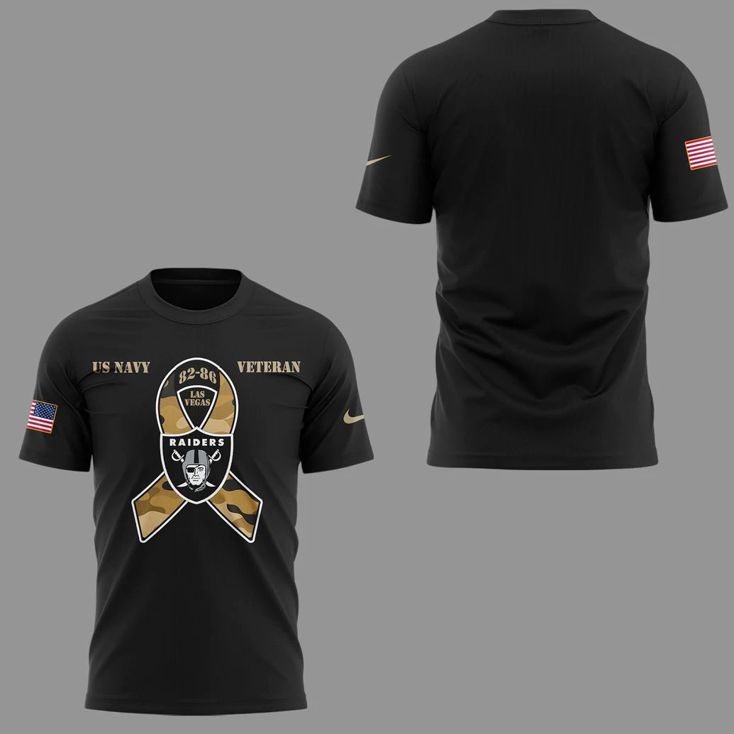 Unite Valor and Victory: The Definitive US Navy Las Vegas Raiders Veteran T-Shirt for True Devotion