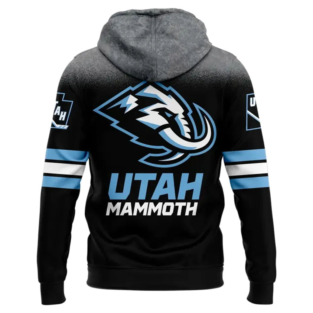 At PintSizedPremium, our commitment to exceptional craftsmanship is evident in every detail of the Utah Mammoth 2025-2026 Rivalries Cold Front Hoodie. Crafted for both enduring style and supreme comfort, this hoodie is a masterpiece of design and material. The base is a deep, commanding black, symbolizing the team’s formidable presence and resilience, providing a powerful backdrop for the vibrant team colors. Contrasting beautifully, striking light blue accents echo the icy dominance of the Mammoth, while crisp white details add a dynamic edge, capturing the spirit of a relentless pursuit of victory. A sophisticated heather grey gradient gracefully blends across the upper body and hood, reminiscent of storm clouds gathering over the mountains, adding depth and a modern aesthetic. Front and center, the iconic Utah Mammoth logo, a stylized mammoth head integrated with a dynamic lightning bolt, is meticulously rendered, embodying speed, power, and an indomitable will. Above this powerful emblem, the bold “UTAH” lettering proudly anchors the design, while a prominent, officially recognized league emblem graces the upper left chest, signifying its authentic connection to the sport. The reverse side echoes this grandeur, showcasing an even larger Utah Mammoth logo and the full “UTAH MAMMOTH” wordmark in bold light blue and white, ensuring your allegiance is unmistakable from every vantage point. The sleeves feature distinctive horizontal stripes of light blue and white, a classic athletic design element that enhances the hoodie’s dynamic appeal and complements the overall team aesthetic. Every stitch, every fiber, speaks to the premium quality that PintSizedPremium is known for, ensuring a garment that is as durable as it is stylish. The practical kangaroo pocket offers warmth and convenient storage, while the adjustable drawstring hood provides versatile protection against the elements, literally or metaphorically.